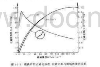 組成相同、含量相同而形狀不同的磁鐵礦的比磁化強度、比磁化率與磁場強度的關(guān)系。不同形狀的礦粒,在相同的磁場中被磁化時顯示的磁性不同。